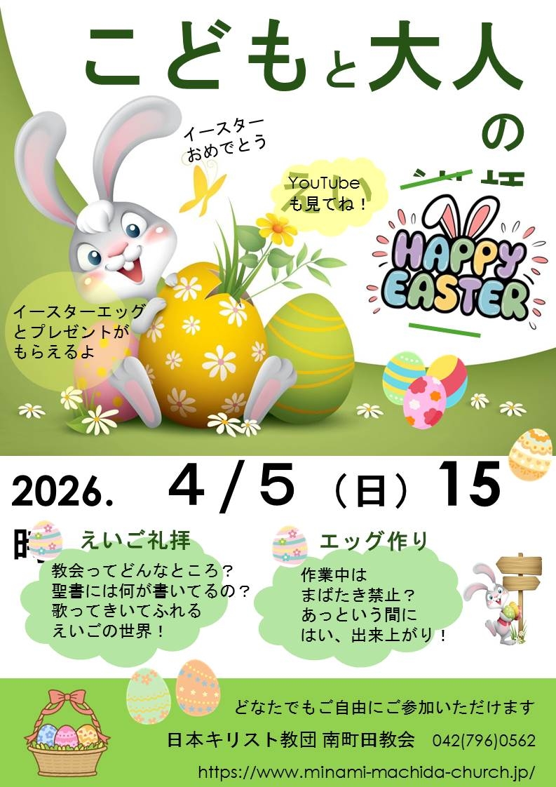 子どもと大人のイースター英語礼拝 午後3時より